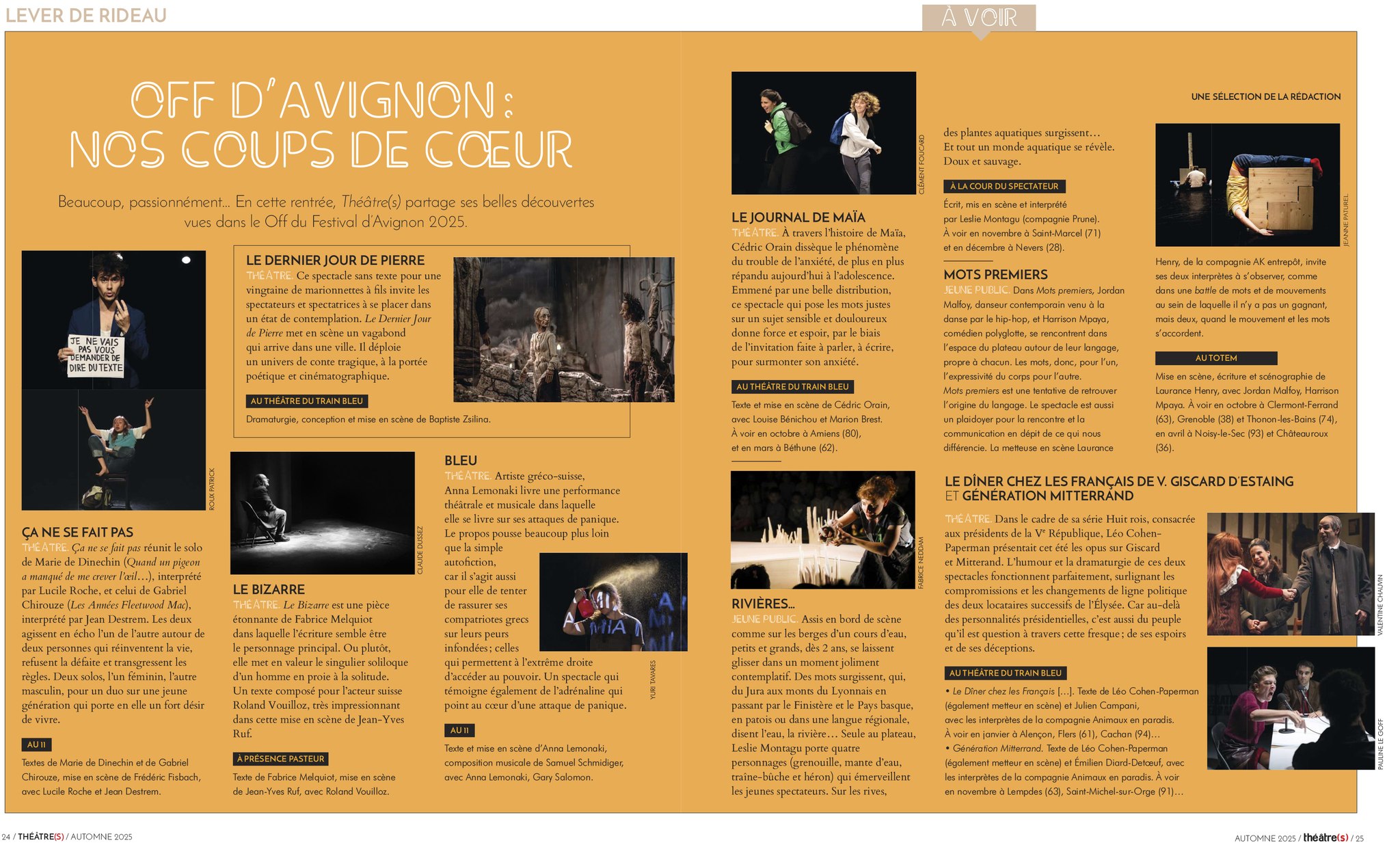 article paru dans Télérama en juillet 2025 parlant du spectacle Rivières... et lui attribuant TTT